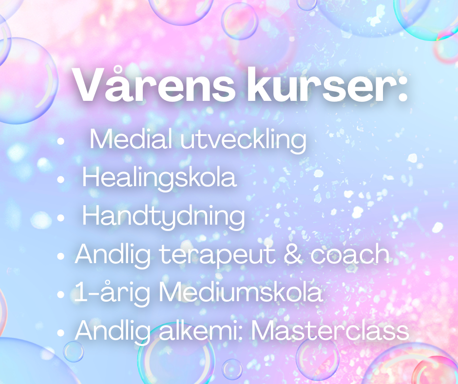 Året bjuder bland annat på professionell handtydningsutbildning, Sommarskola för inre läkning, Mediumskola och en alldeles ny utbildning jag valt att kalla Andlig terapeut och coach.